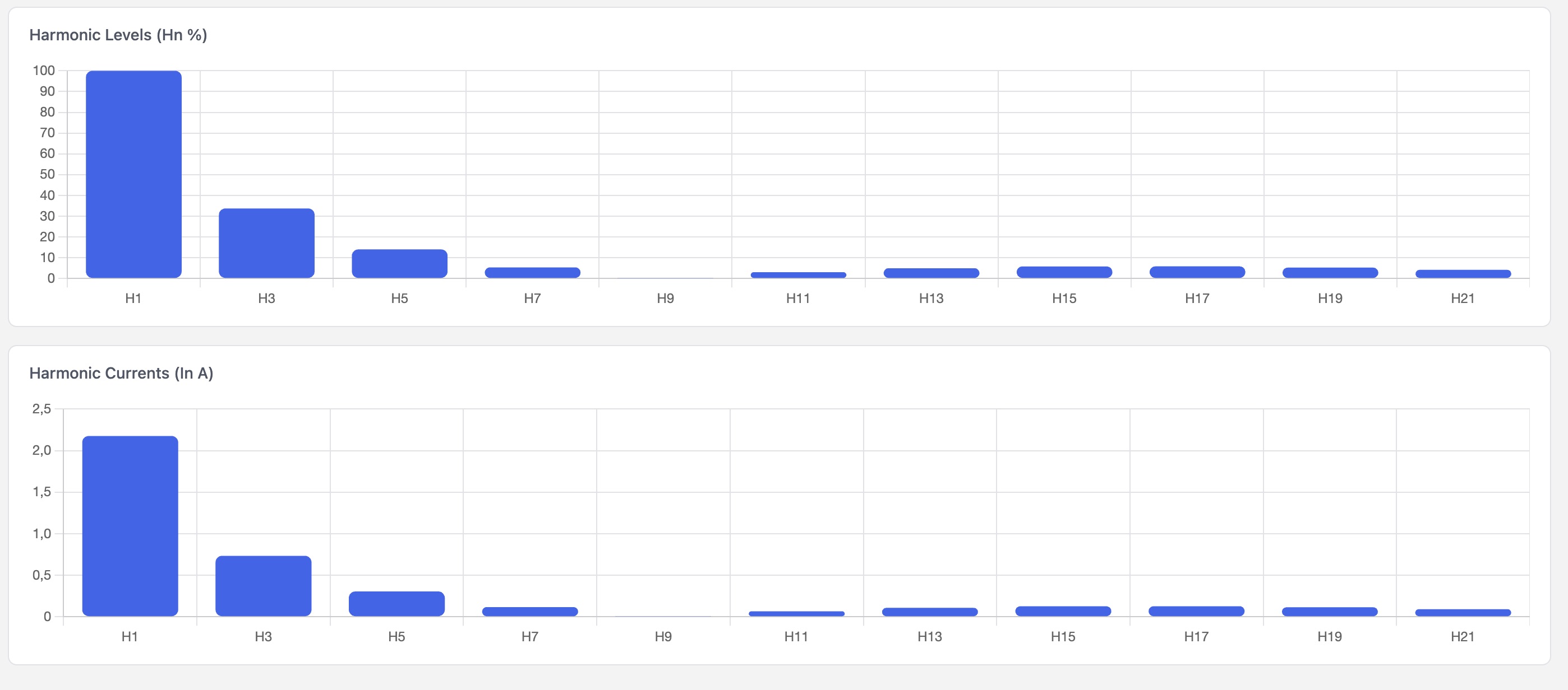 You will also find the harmonics levels and harmonic currents generated by each output.