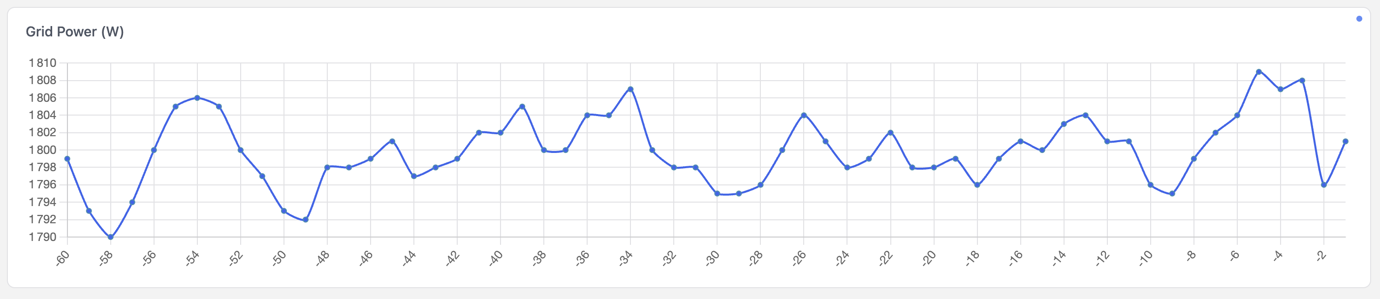 No filtering, during a “calm” period on the grid we can see spikes with an amplitude of 40 Watts.